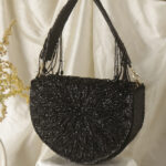 This elegant black beaded shoulder bag with tassels is the perfect way to add a touch of sophistication and vintage glamour to your outfit. The intricate beadwork catches the light beautifully, and the tassels add a touch of movement and fun. This bag is fully lined and features a secure clasp closure to keep your belongings safe. Spacious enough for your essentials, this bag is a versatile choice for day or night.
