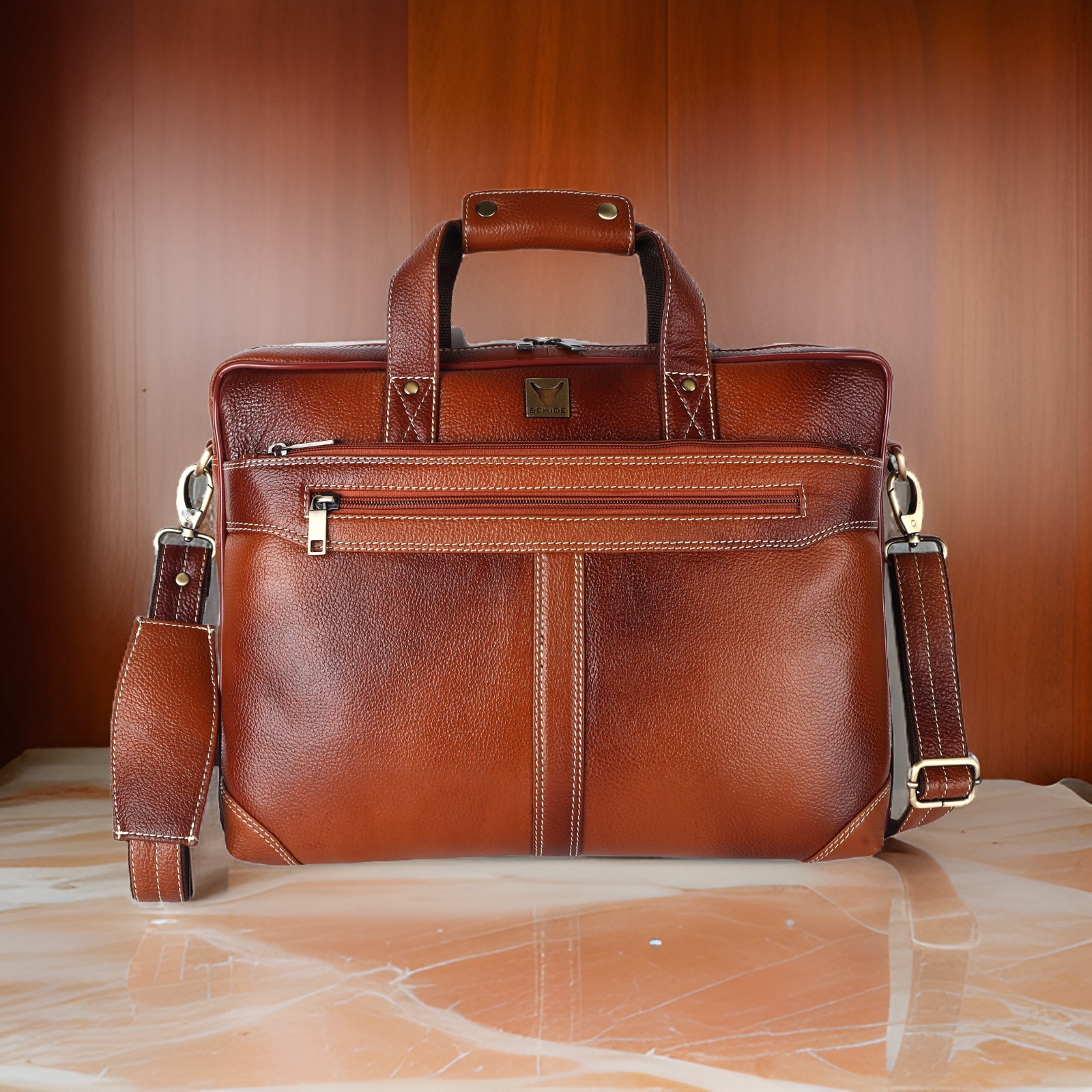 Men’s Genuine Leather Office Bag with Padded Laptop Compartment