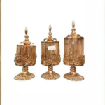 Add a touch of regal elegance to your home decor with this exquisite small candle holder. The ornate metal frame and shimmering glass body create a captivating display when lit. Perfect for creating a warm and inviting atmosphere, this candle holder is a versatile piece that complements a variety of interior styles.